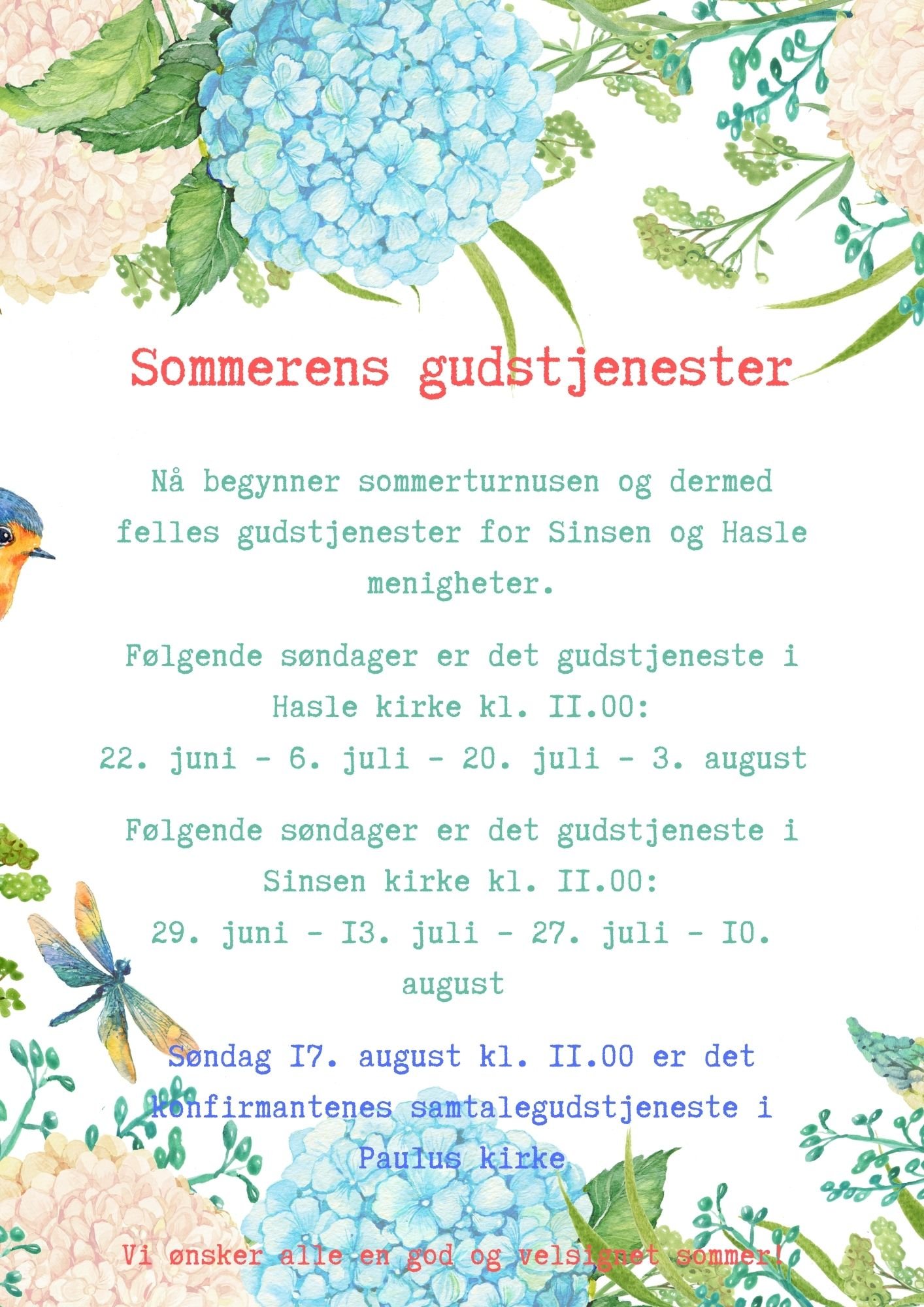 Sommerturnus - felles gudstjenester i sommer med Hasle og Sinsen
