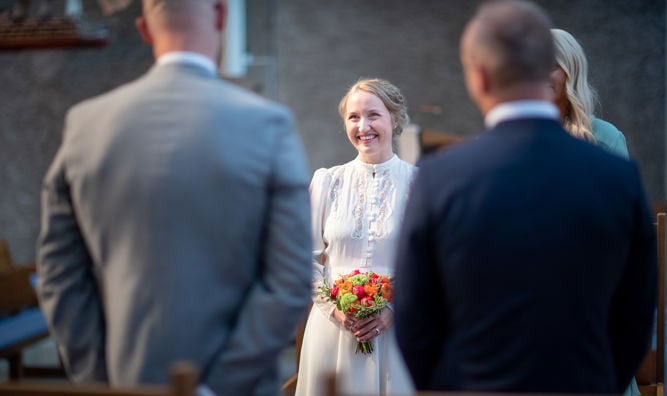 Mange tenkjer på kyrkjebryllaup som noko som må vere stort, med mange gjester og eit større budsjett. Slik treng det ikkje vere. Bryllaup er ei stor feiring av kjærleiken – uansett. Seremonien er enkel, men han er like stor og heilag som eit tradisjonelt kyrkjebryllaup. Heilt enkelt, like stort! På bryllaupsdagen vert ekteskapet sett inn i ein større samanheng. Ekteskapet og framtida dykkar vert bedne for – i eit vakkert kyrkjerom. Med tekstar som rører, gir de løftet om å elske og ære kvarandre.
