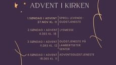 1.12.2023Velkommen til gudstjenester i advent og jul. Her ser du programmet for hva som skjer.