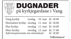 7.10.2025Det er mykje som skjer i oktober i kyrkja i Vang. Kanskje du vil møta opp ? Håpar me ser deg!