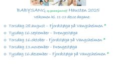 Velkommen til babysong på Drengestøga og generasjonstreff med babysong på Vangsheimen i haust.