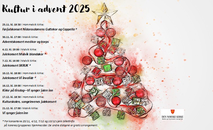 Her er en oversikt over Gudstjenestene som skal være i Hommelvik og Malvik denne julen!