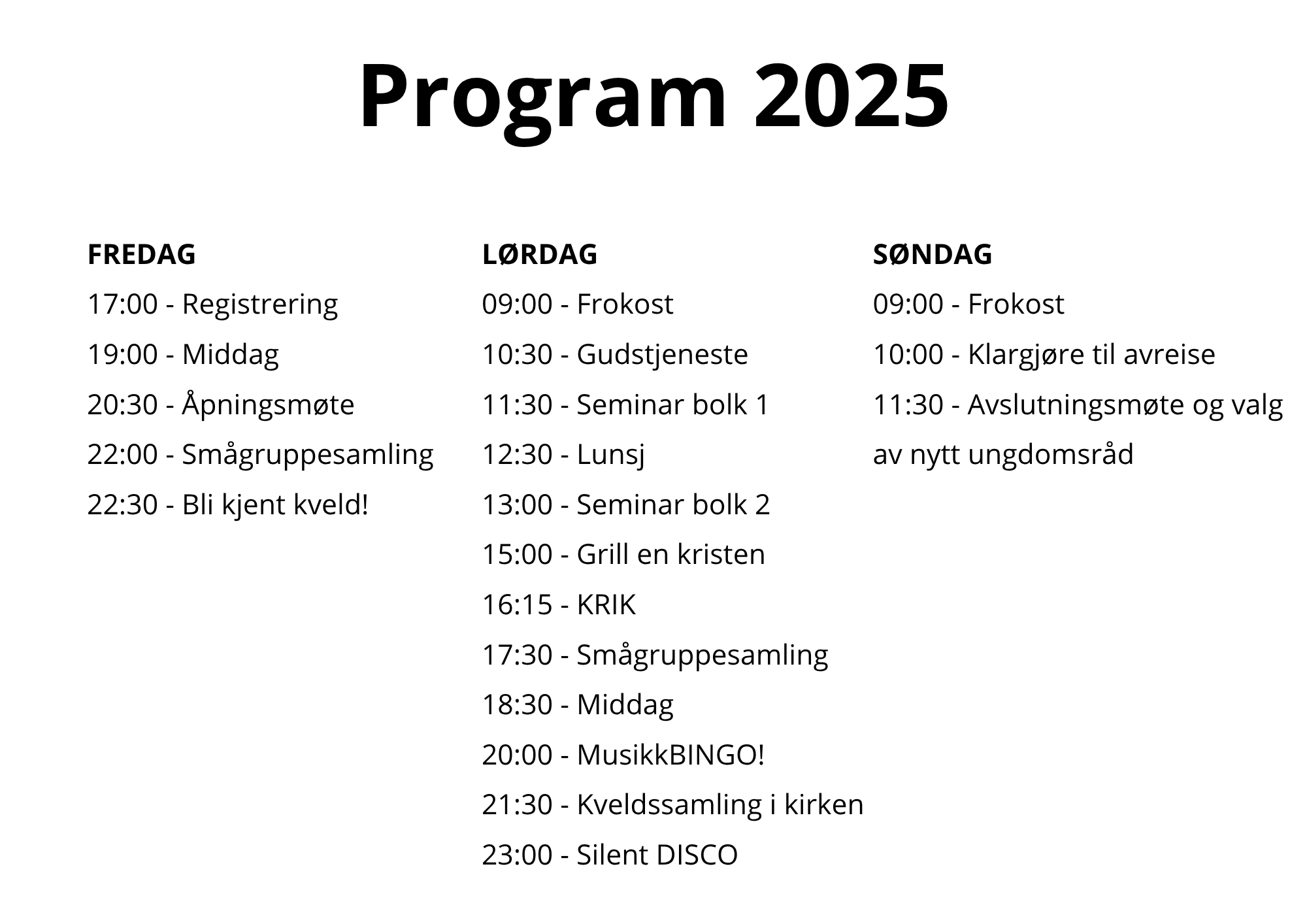 Bli kjent med ungdom fra hele bispedømmet. Det blir også spennende seminarer, aktiviteter, møter og gøy underholdning på kveldene!