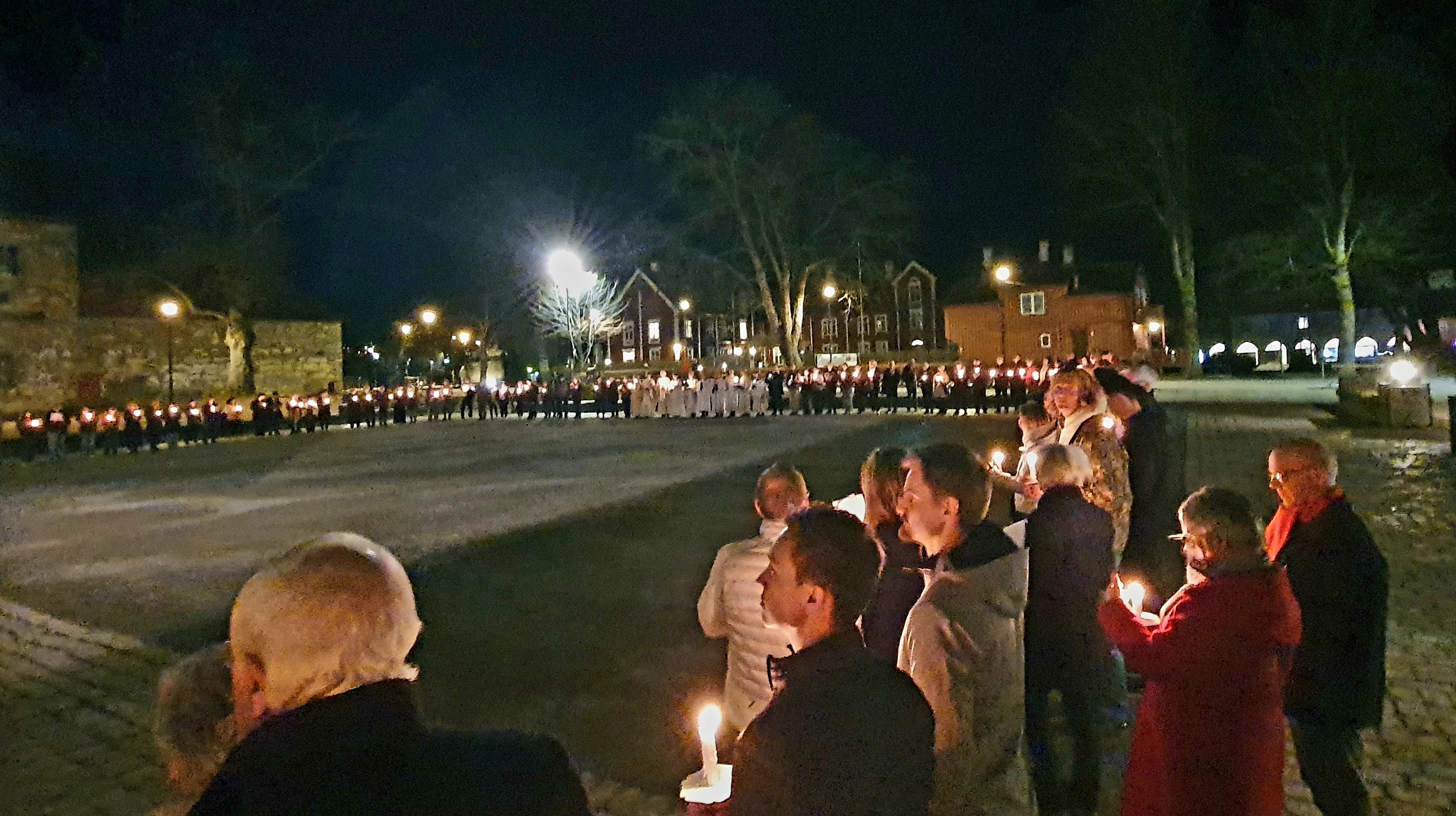 En ring av levende flammer etter påskenattsgudstjenesten i Nidarosdomen. (Foto: Sveinung Enstad)