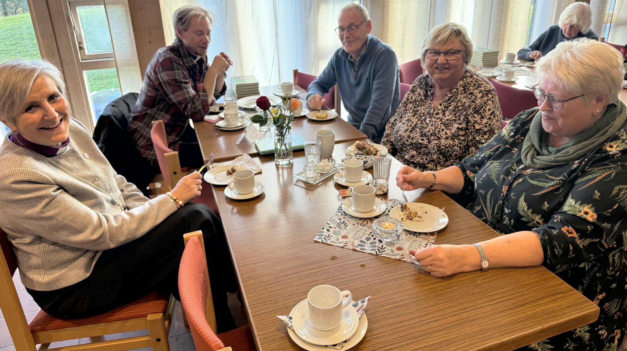 På den samme visitasdagen i Heimdal og Kolstad, fikk biskop Herborg møte deltakerne på formiddagstreff i Kolstad kirke. Der gikk praten rundt bordene i takt med kaffelukta fra kjøkkenet.