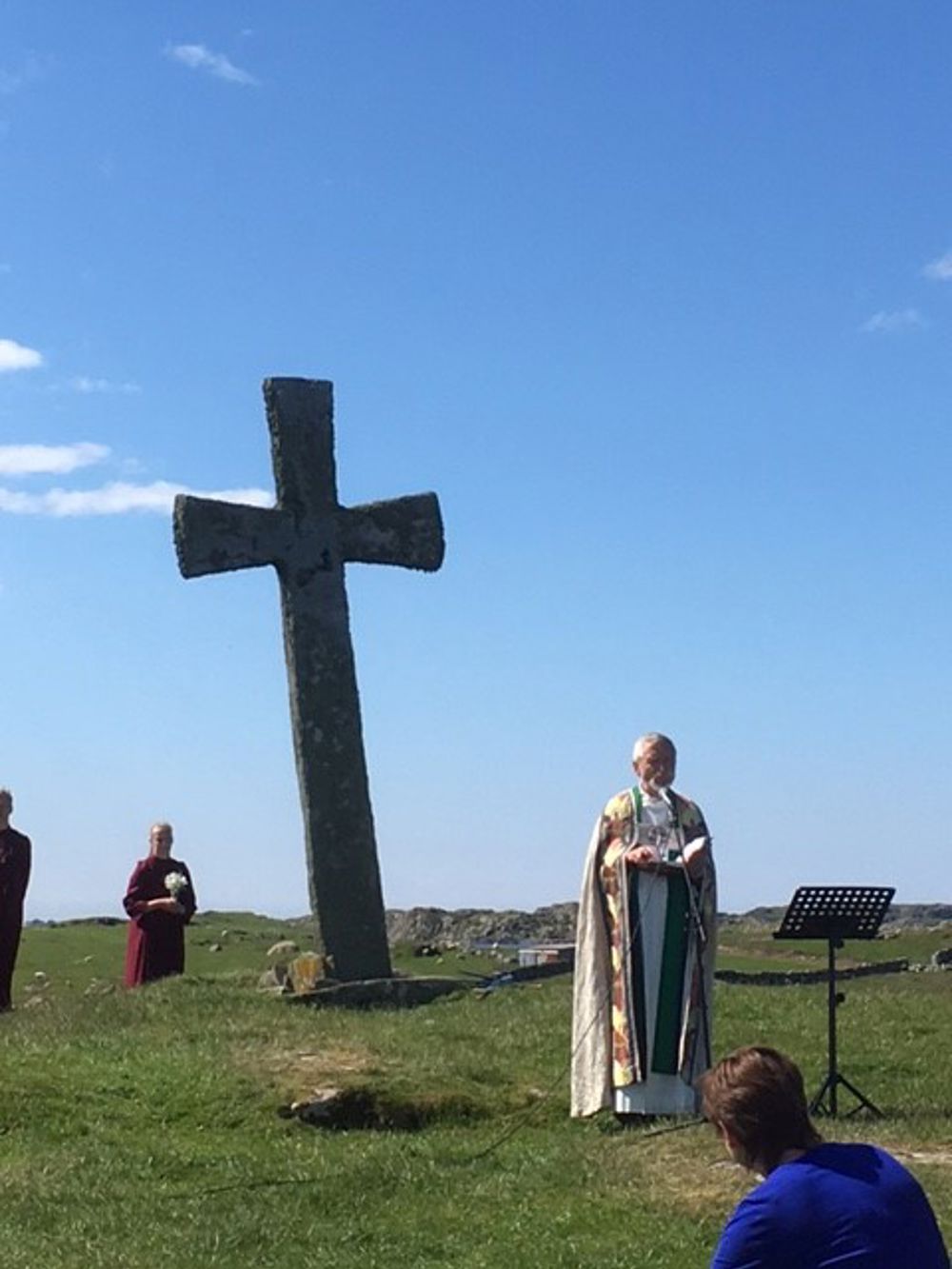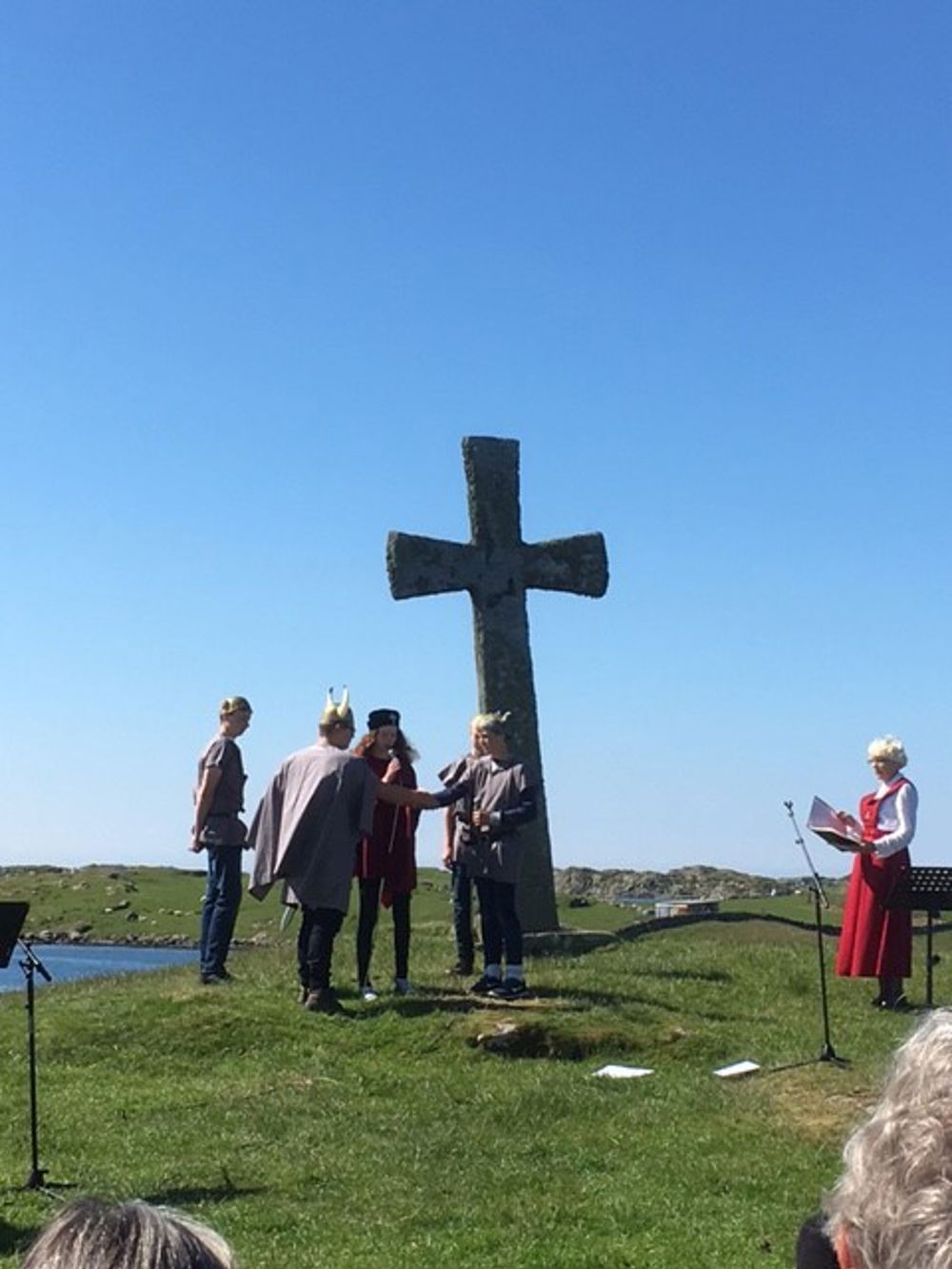 Elever fra Kvitsøy skole oppførte en fri dramatisering av forliket ved steinkorset før det ble feiret gudstjeneste. Både menighet, historielag og biskop var seg bevisste den keltiske tradisjon som påvirket denne landsdelen så sterkt. Menighetsrådets leder åpnet med å si: «Steinkrossen minner oss om at forsoning er skapt mellom Gud og mennesker. Ei forsoning me skal leva ut i vår kvardag.» Han rørte ved selve kjernen i den keltiske tradisjon som formet den første kristentid i kyst-Norge: kelternes hemmelighet lå i at de knyttet sammen sakrament og sysler, alter og arne, bønn og arbeid, slik Ray Simpson fra Lindisfarne formulerte seg på et av sine besøk i Stavanger bispedømme.
