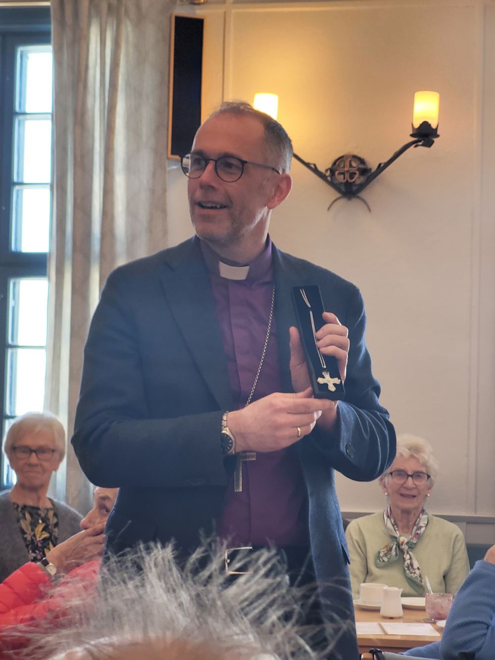 Biskopen fikk et replika av det eldste korset funnet i Østre Toten. Foto: Christian v. Harling.