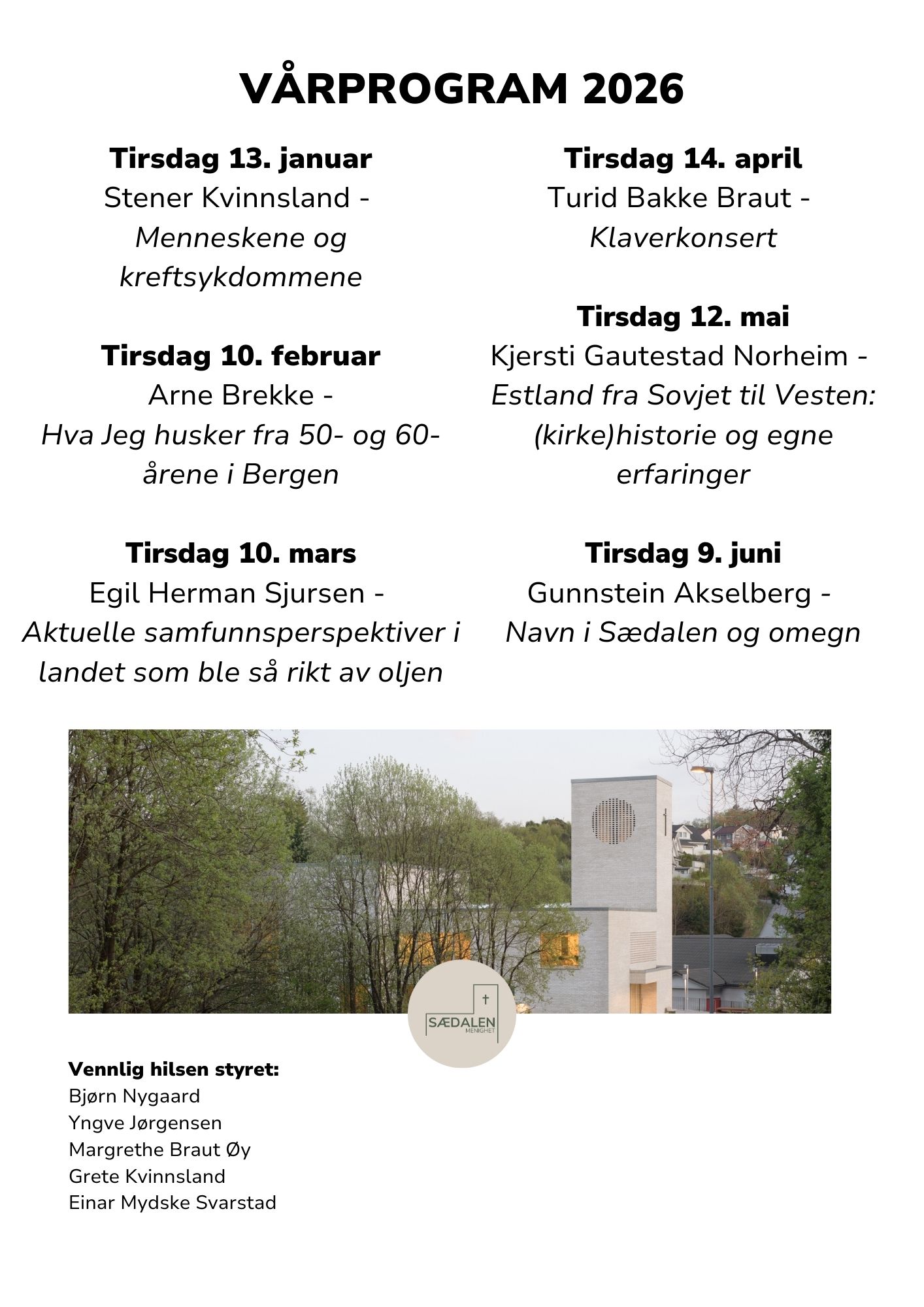 Den andre tirsdagen i måneden inviteres det til "seniortorg" i kirketorget i Sædalen kirke.