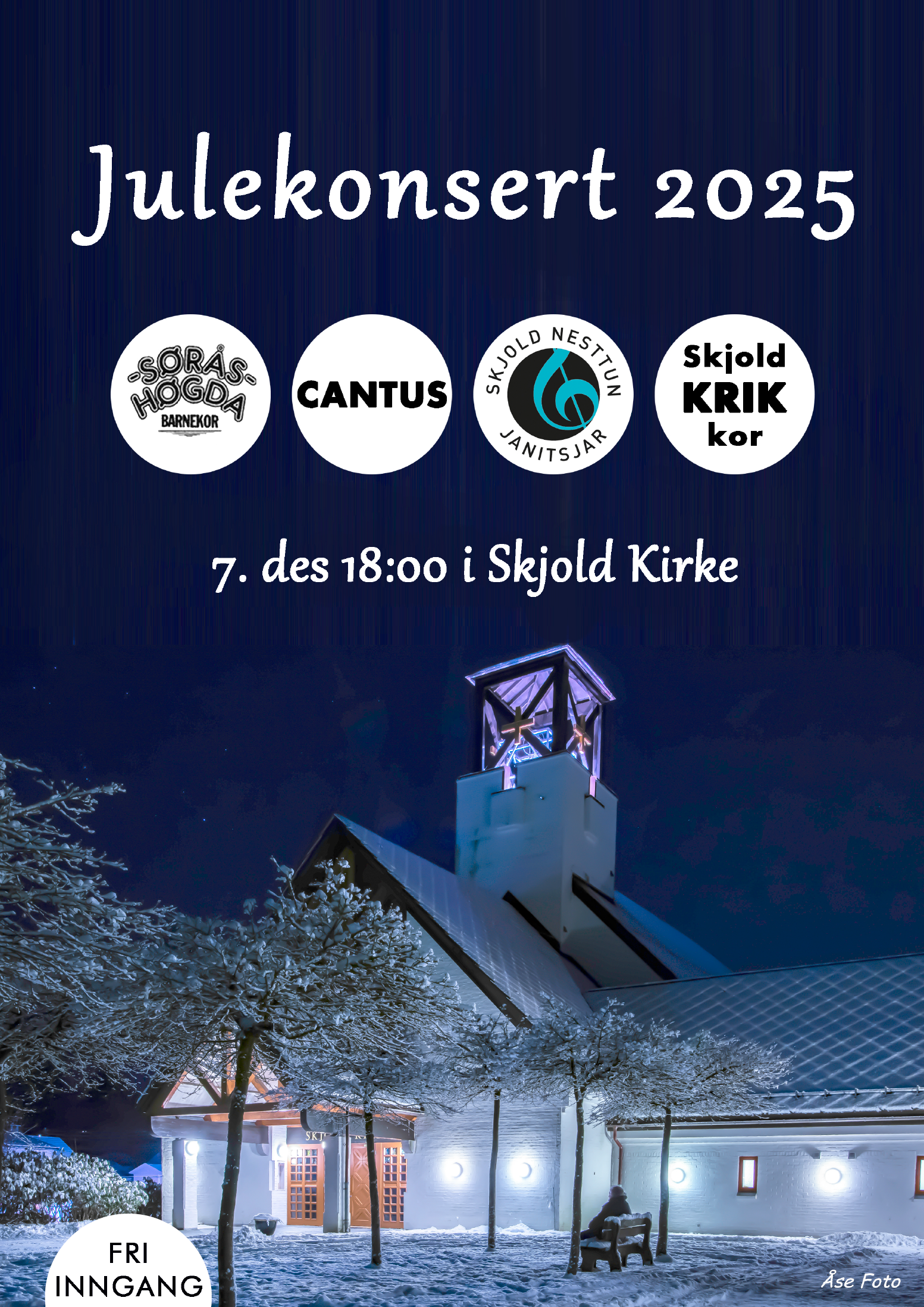 Siden Skjold kirke var ny, har det vært en tradisjon at Skjold Nesttun Janitsjar og Skjold menighet i samarbeid har arrangert julekonsert 2. søndag i advent. Søråshøgda barnekor, Cantus, Skjold KRIK kor og Skjold Nesttun Janitsjar fremfører eget repertoar, og det blir flotte fellesnumre med kor og korps. Vel møtt til en vakker og stemningsfull time med lokale aktører.