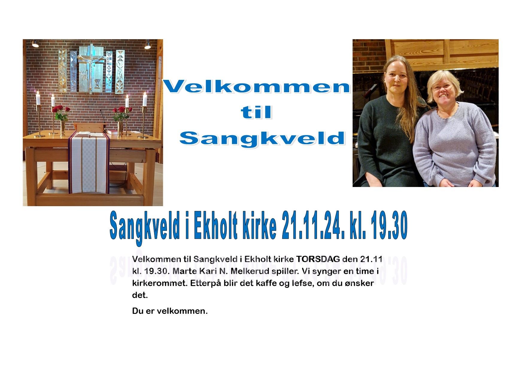 Sangkveld i Ekholt kirke torsdag 21.november kl. 19.30