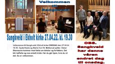 21.4.2022Så er det Sangkveld igjen. Vi har byttet dag til onsdag. Velkommen