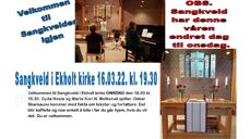 Sangkveld i Ekholt kirke onsdag 16.mars kl. 19.30