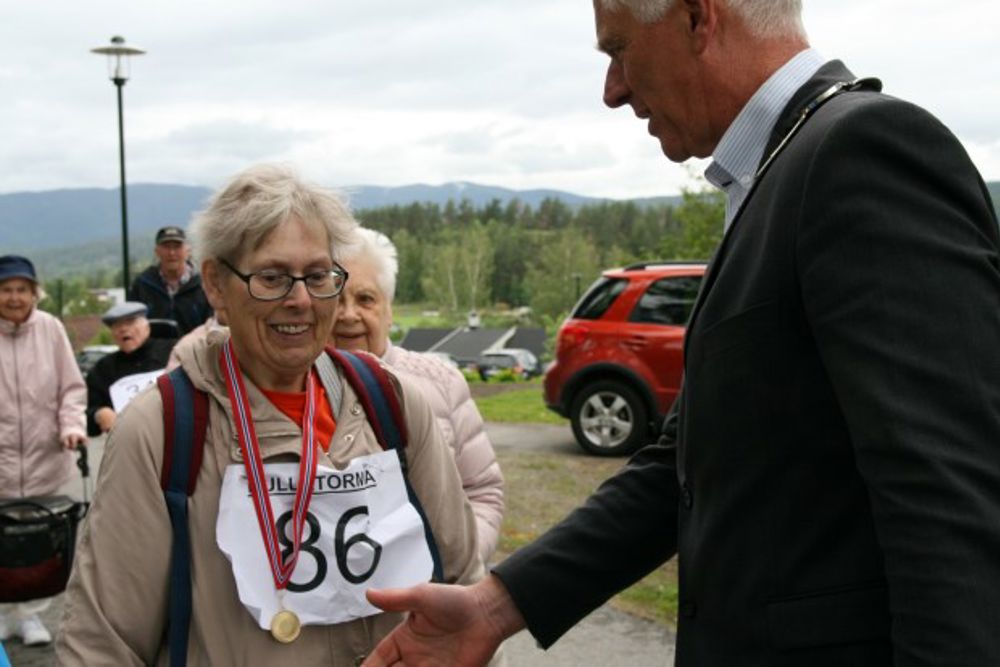 I år var eldreminister Sylvi Listhaug med oss, hun ledsaget en av de gamle gjennom deler av løypa, og hadde en hilsen til alle etter målgang. Etter løpet var det grilling i parken bak Modumheimen, servering av pølser, bløtkake og kaffe, før avslutningen.