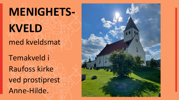 15.9.2022Vi begynner med menighetskvelder med kveldsmat i Raufoss kirke. Her kan du lese mer.