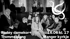4.6.2024Søndag 16.juni kl. 17:00 innbyr Radøy damekor og Trommeklang til sommarkonsert i Manger kyrkje.