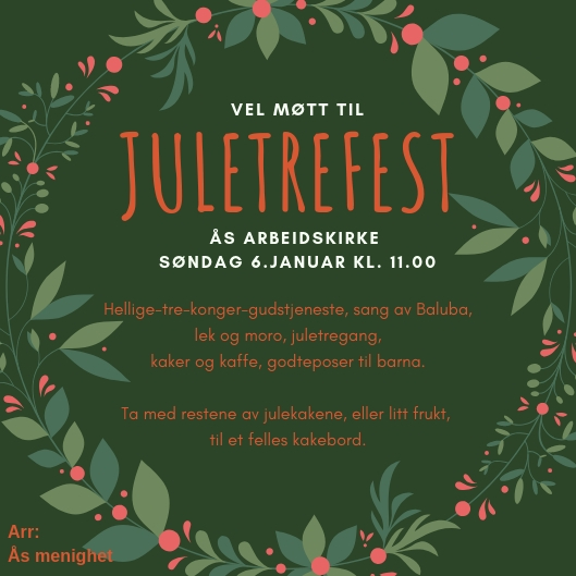 20.12.20186. januar - på HelligTreKongers-dag blir det juletrefest i Ås arbeidskirke kl. 11.00