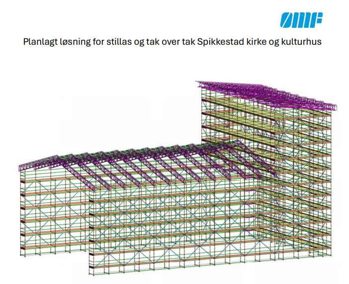 14.6.2024Nå har arbeidet startet på rehabiliteringen av taket på Spikkestad kirke og kultursenter