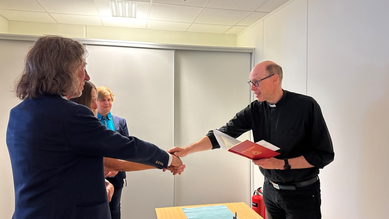 Brudeparet var enig med prosten og den ansatte på kirkekontoret som stilte som vitne for vielsen i at dette var mye enklere, men like verdig.