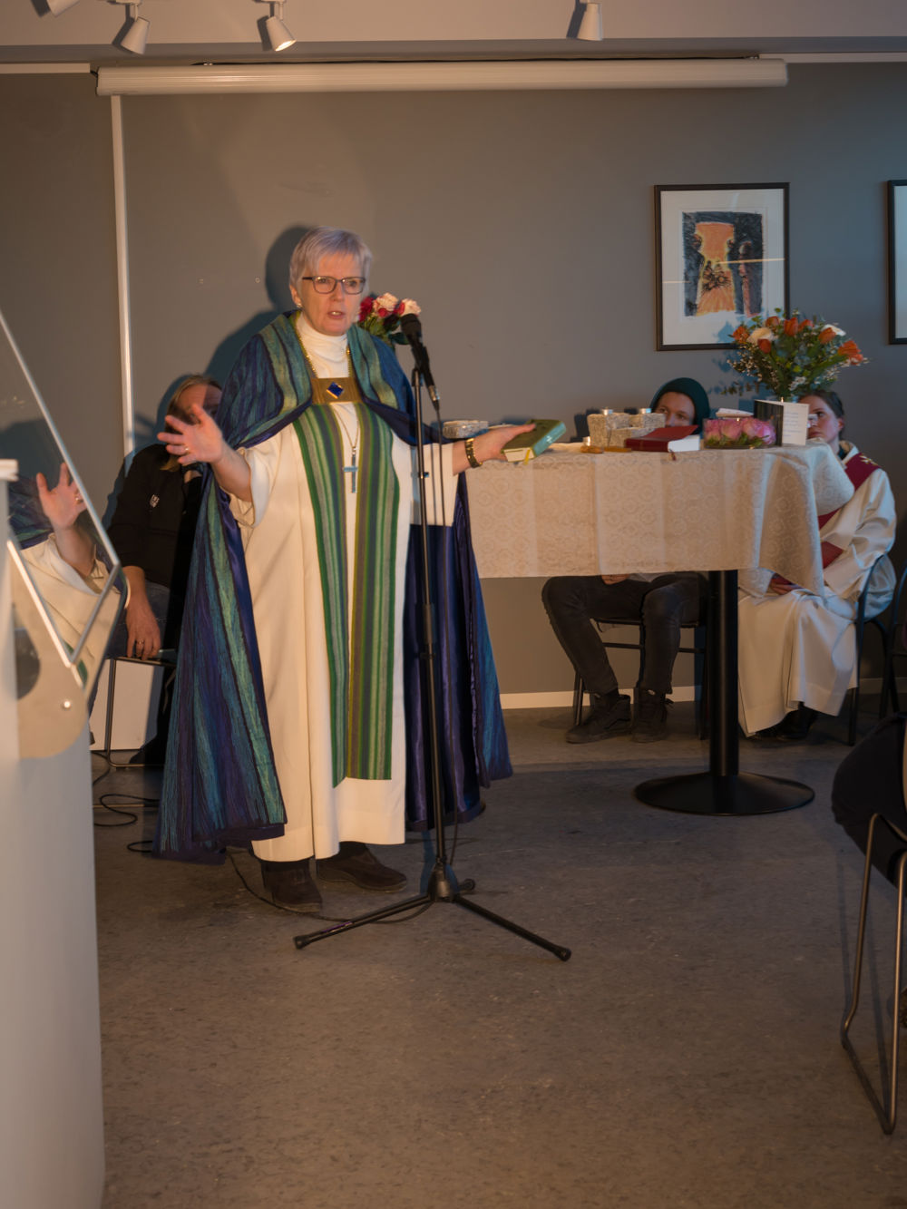 Senere i gudstjenesten leste biskopen vigslingsbønnen som gjør lystenningsrommet til en kirke, og deltagerne tente lys i tro håp og kjærlighet og leste ulike bibeltekster.