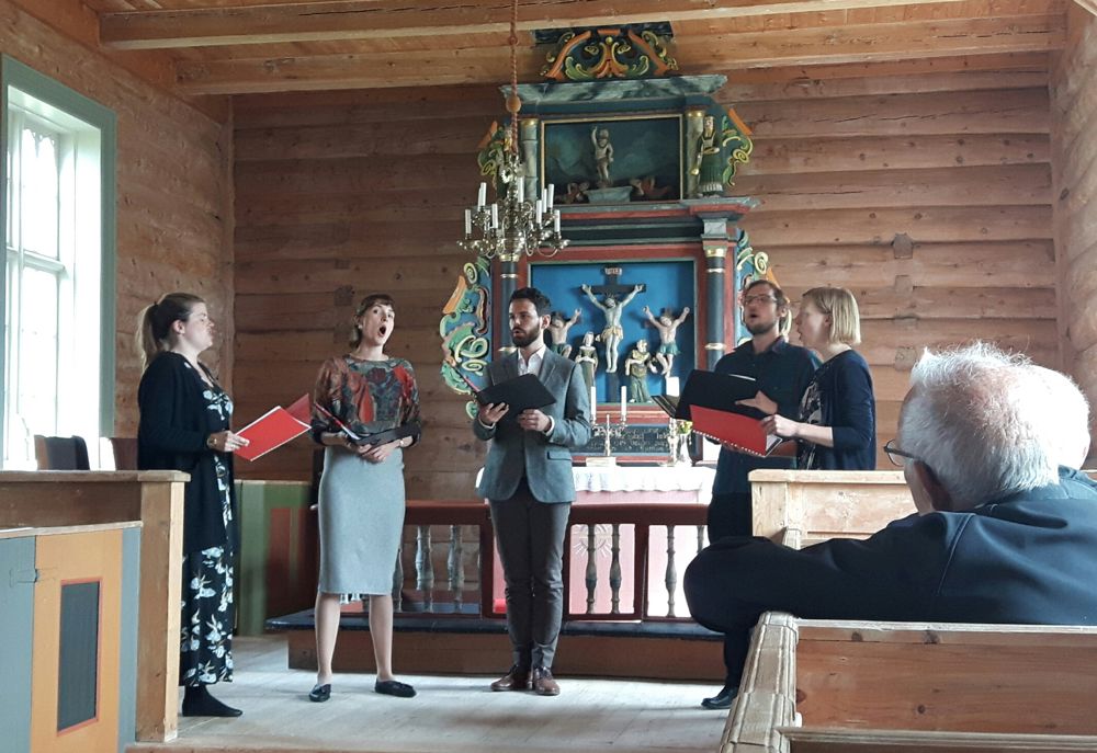 Rørstad vokalensemble inviterte også til spennende konsert med variert repertoar og spenstig bruk av kirkerommet. Victoria Lid-Bergius fra Stockholm med sterk tilknytting til Rørstad har trommet sammen dyktige musikere: Ingvild Espedal, Norge, Julia Blank, Tyskland, Tobias Stukelberger, Sveits og Halvor Fostervoll Melien, Norge