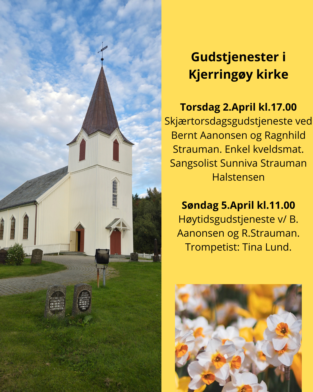 Kjerringøy menighet ønsker alle velkommen til gudstjenester i Kjerringøy kirke på skjærtorsdag og påskedag!