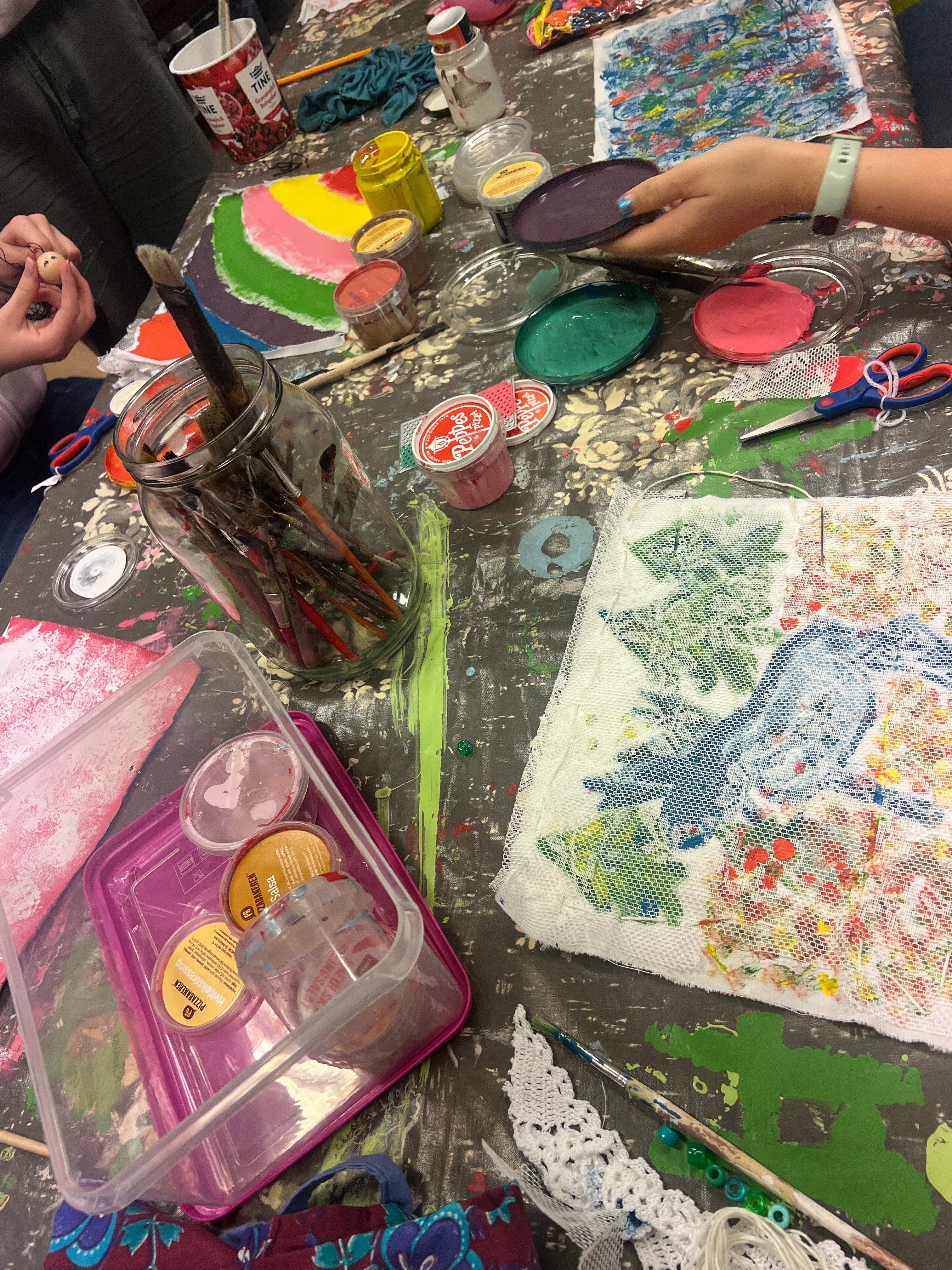 Den ene bakegruppa fikk være med på RE- Kreativt gjenbukssenter i Bodøsjøen. Re har personale som jobber pedagogisk. De fikk i oppgave å lage et bilde som fortalte noe om dem selv. Mens vi jobbet med hendene kom fortellingene om hva de var opptatt av og hva de liker å holde på med i fritiden.