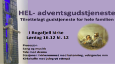 12.12.2023Vi ønsker alle velkommen til HEL-adventsgudstjeneste lørdag 16.12 kl.12!