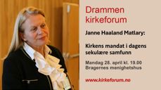 Mandag 28. april kl. 19.00 holder Janne Haaland Matlary foredrag i Bragernes menighetshus.
