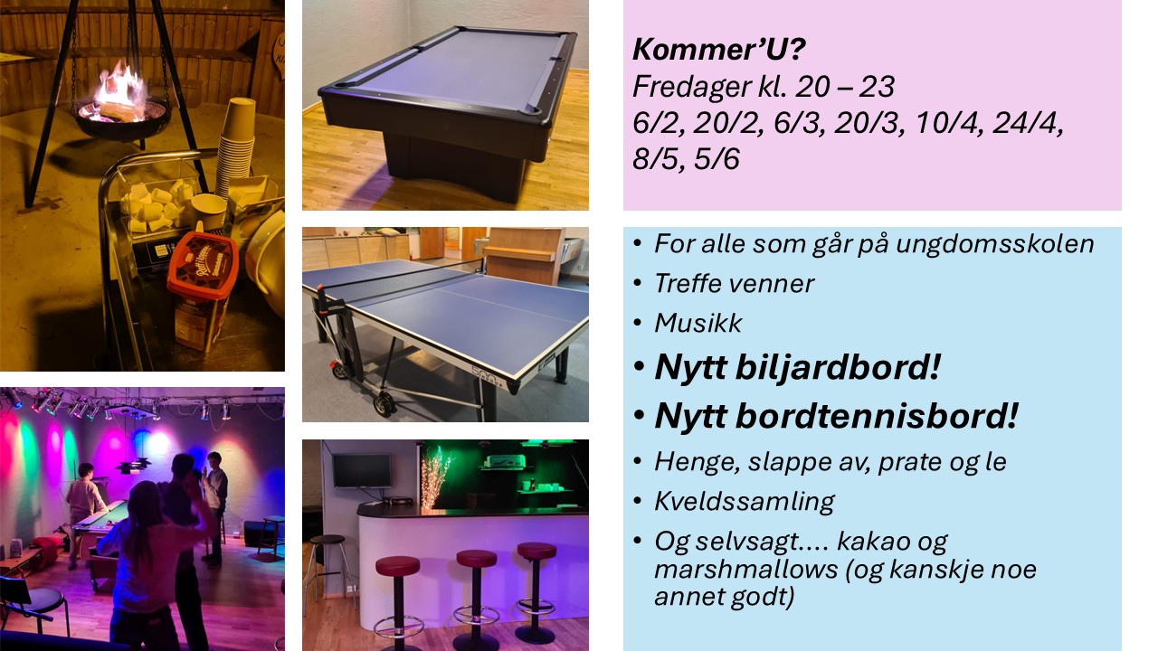 Kommer'U - ungdomsklubb for alle i ungdomsskolealder.