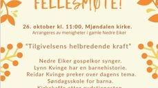 Fellesmøte i Mjøndalen kirke 26. oktober kl. 11.00