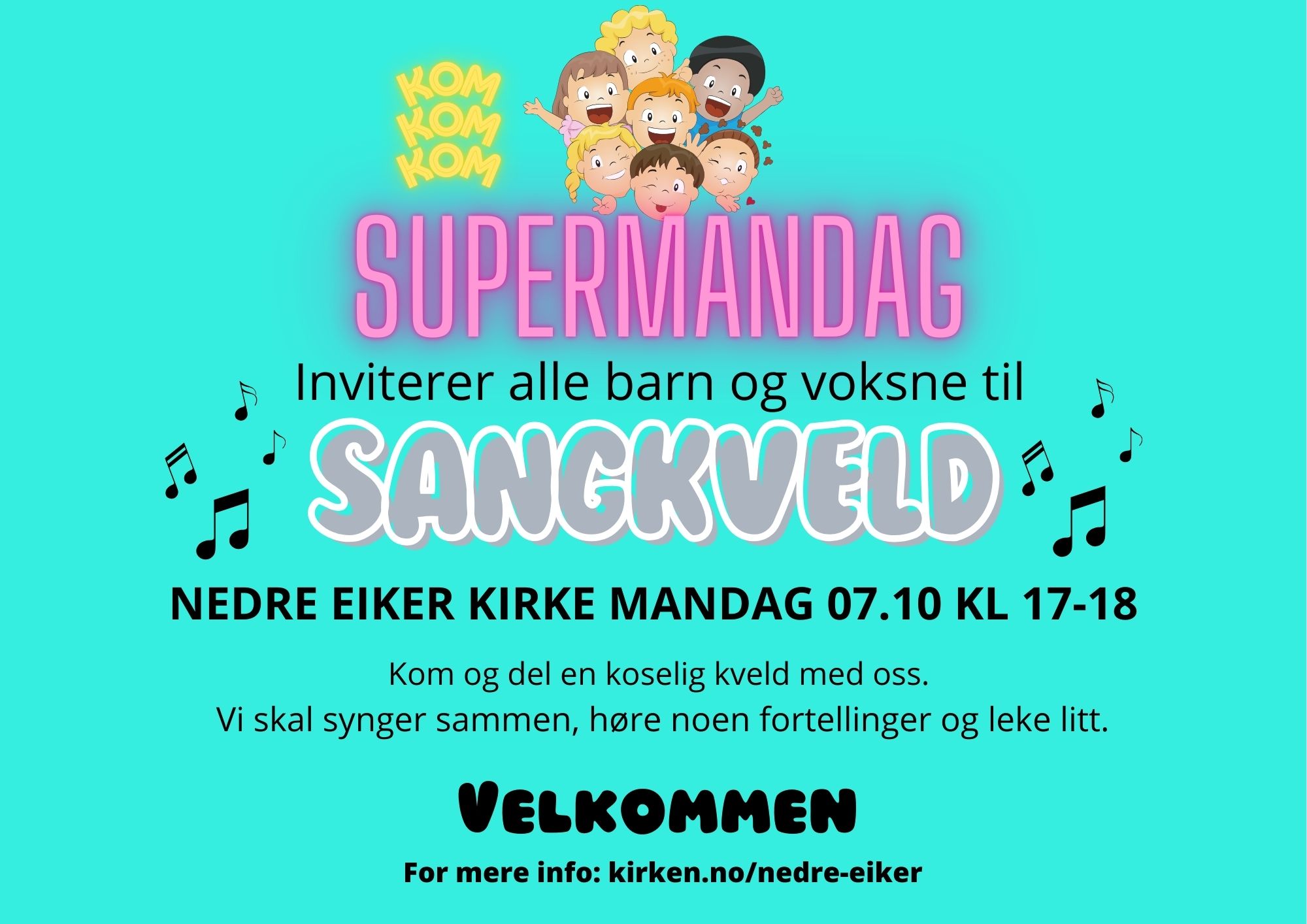 SUPERMANDAG inviterer til SANGKVELD MANDAG 07.10. kl 17-18.