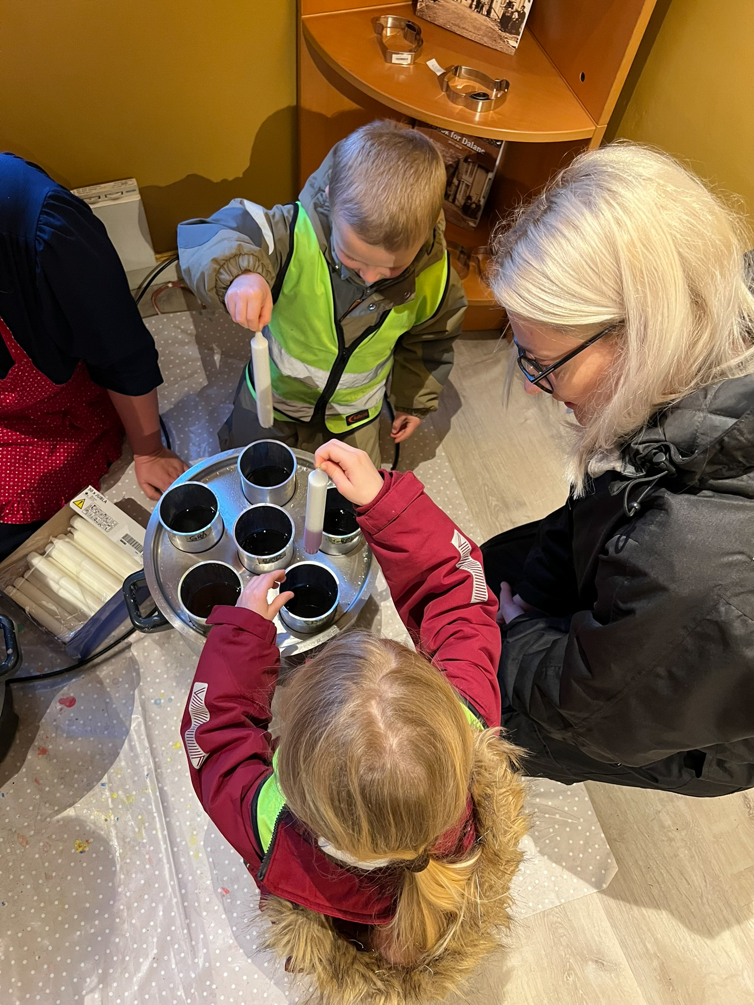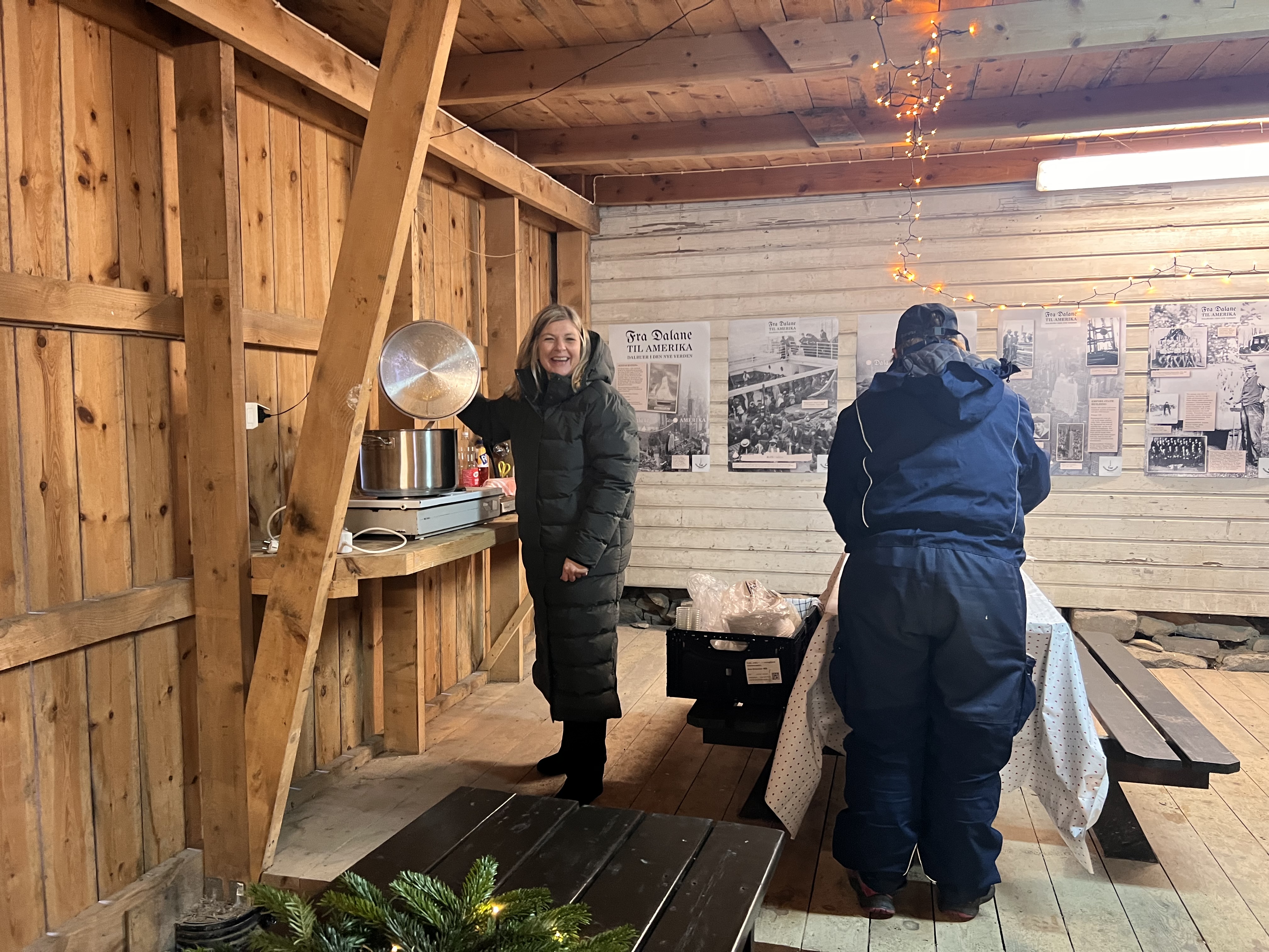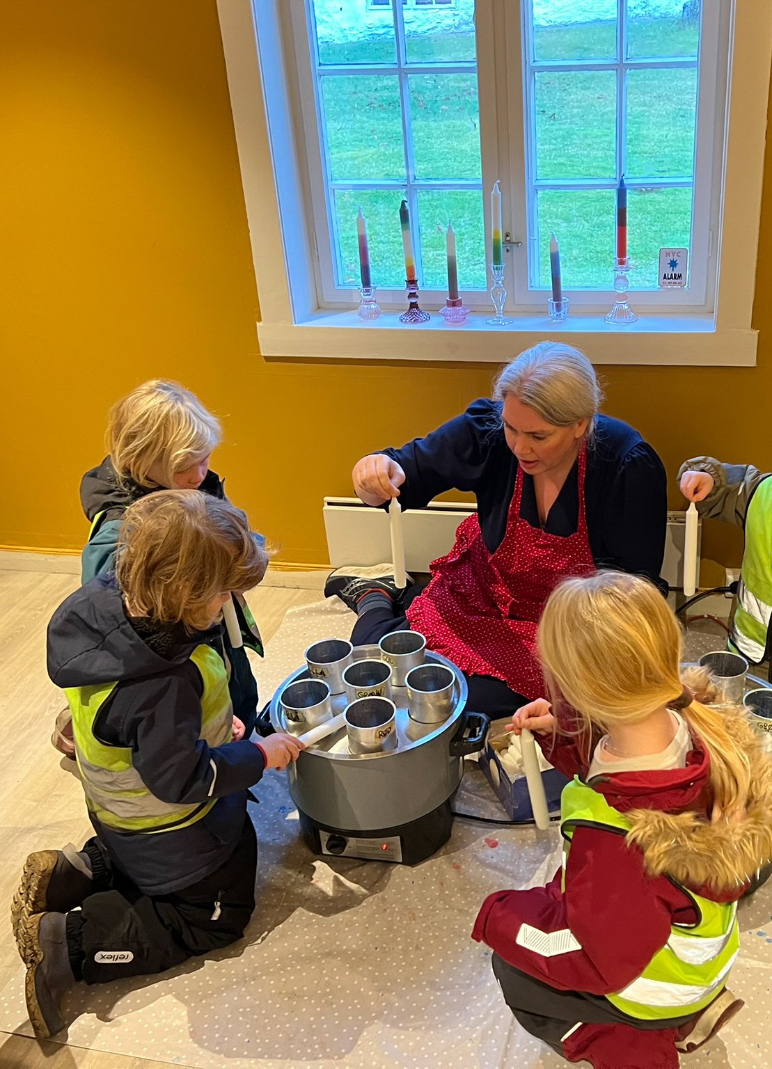Videre har vi gått ned i museumshagen der vi har delt oss i grupper. Alle har etter tur fått spise grøt på loven, dyppe lys i vognskjulet, og fått høre om gamle lyskilder i hovedhuset. I tillegg har alle fått høre om gamle juletre tradsjoner, og vi har gått rundt juletreet til glede for både små og store.
