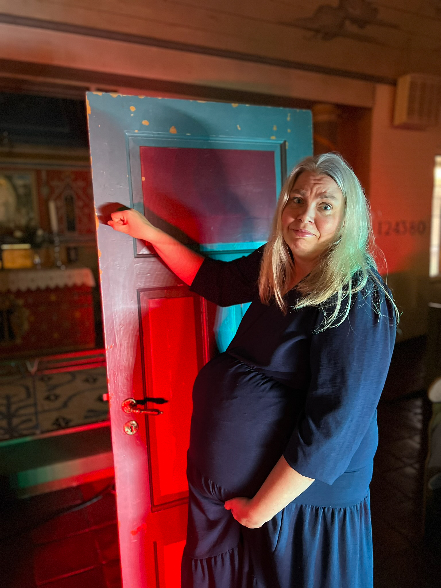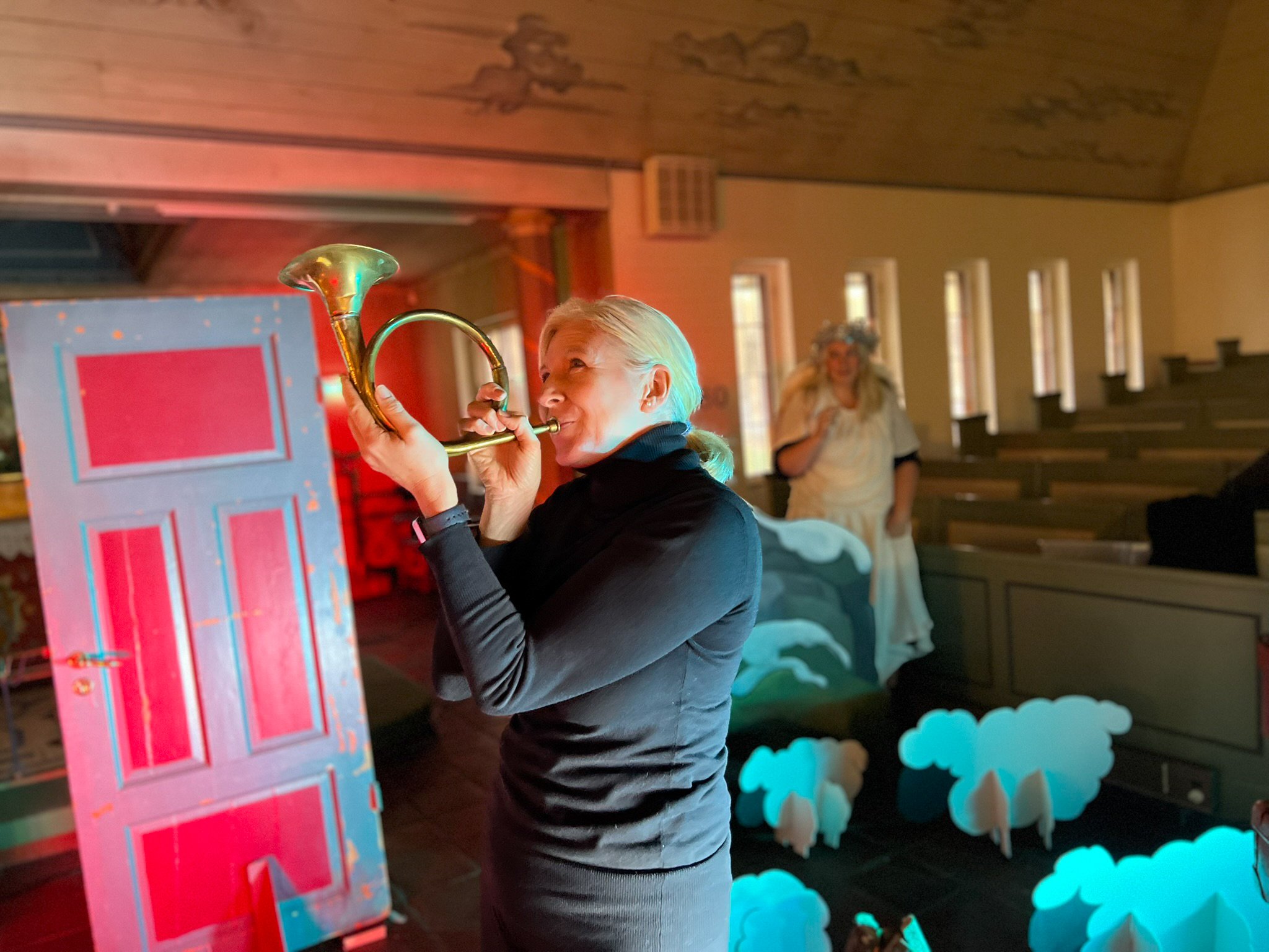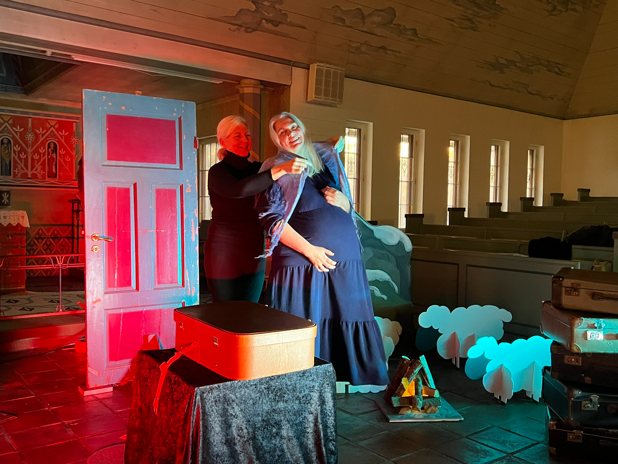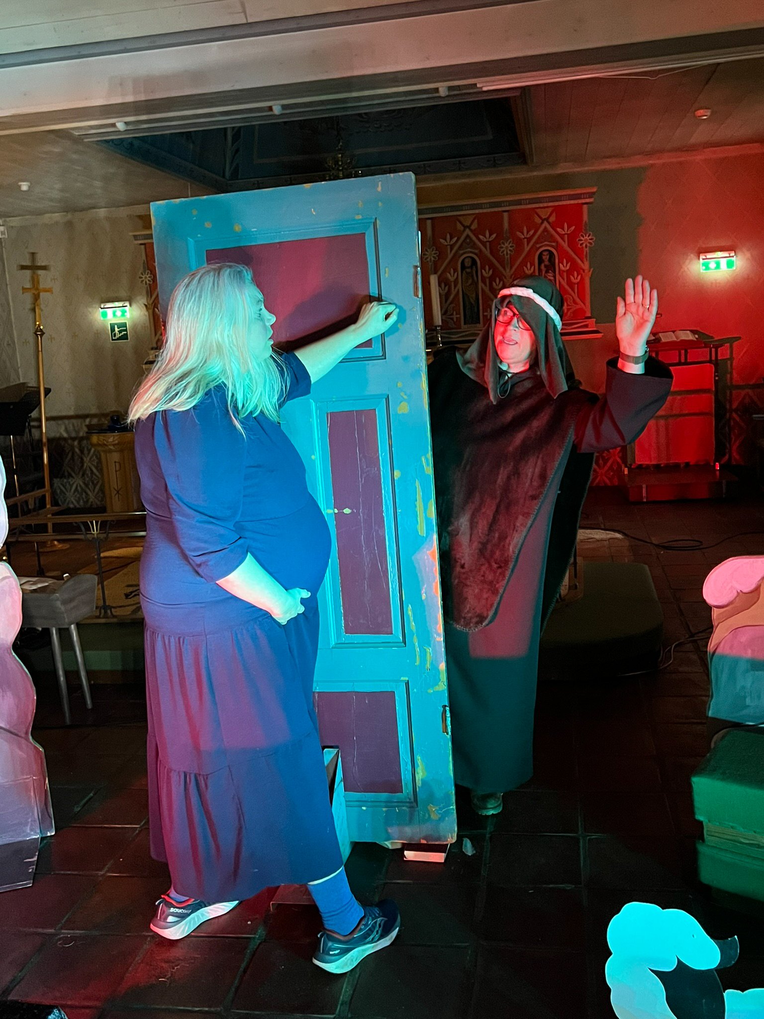 Kristin i rollen som Maria, som søker ly i herberget.