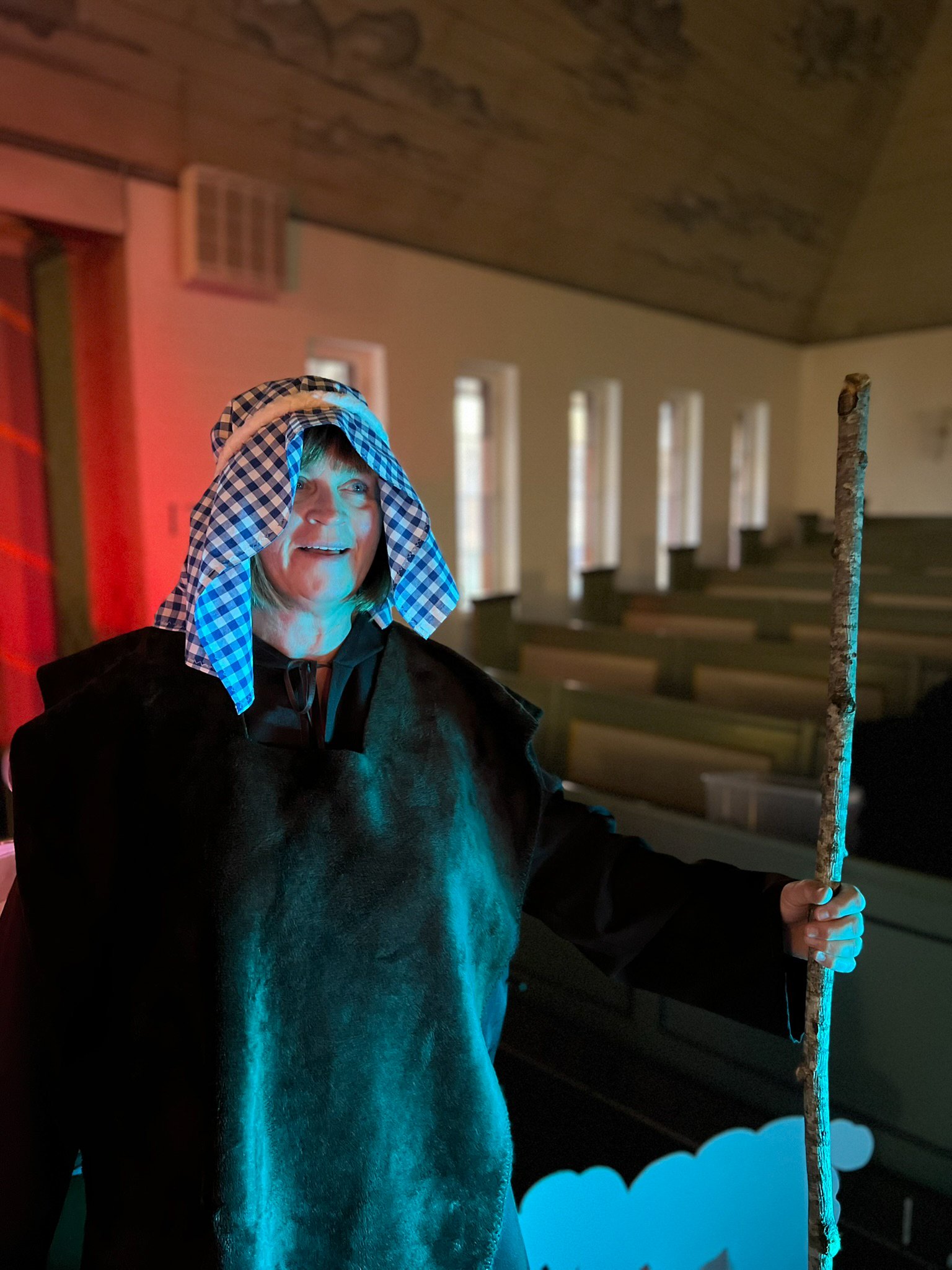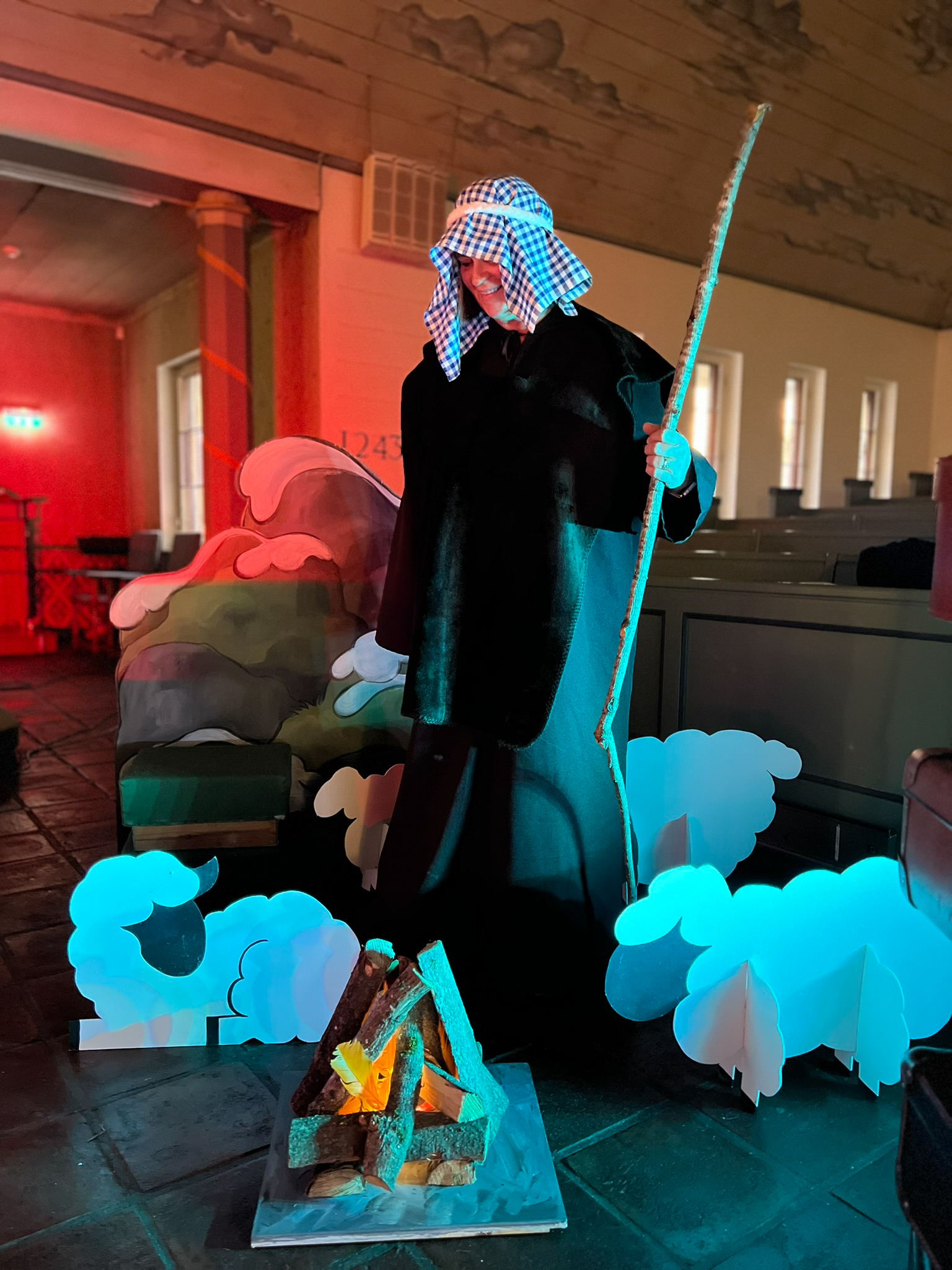 Aud Harriet har stilt opp som vikarierende gjeter og vis mann denne førjulstiden!