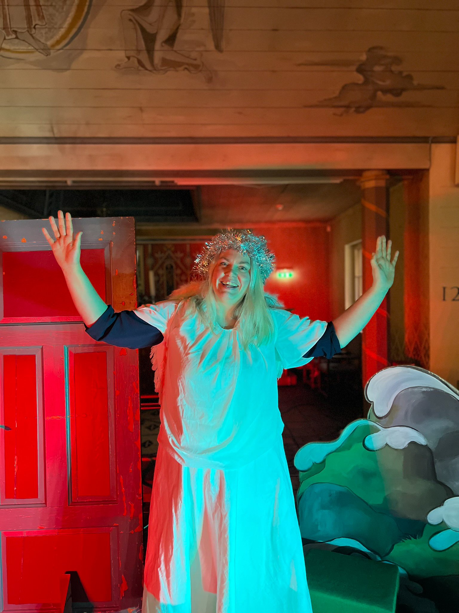 Kristin sjonglerer mellom rollene som Maria, engel og vis mann i stykket.