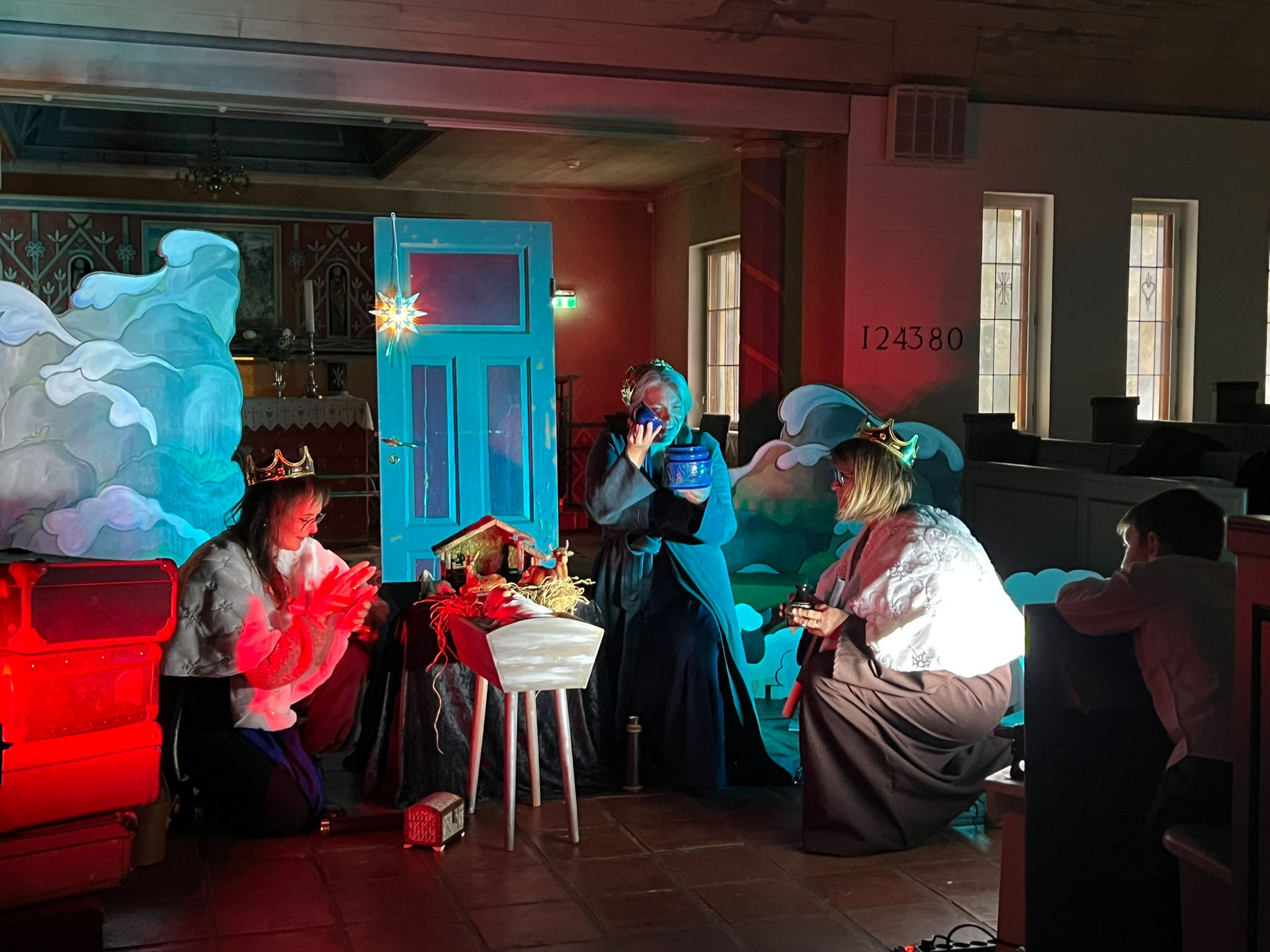 Jesusbarnet blir lagt på strå, og julemagien kjennes i rommet.