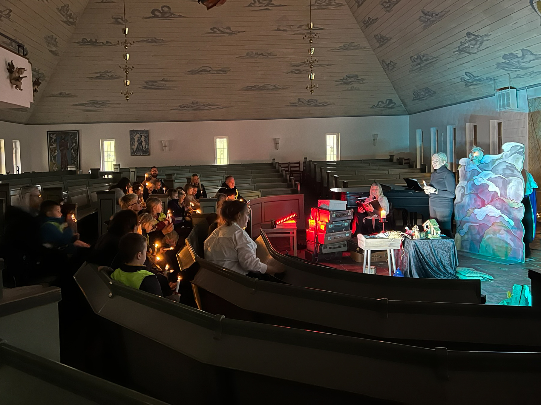 Vi har hatt besøk av opp mot 200 barnehagebarn i tillegg til voksne i Bakkebø kirke og i 3 av husene på museet på Slettebø. Vi har startet med spennende forestilling i kirken der juleevangeliet har blitt fortalt ved hjelp av spennende kofferter, flott musikk, drama og sang.
