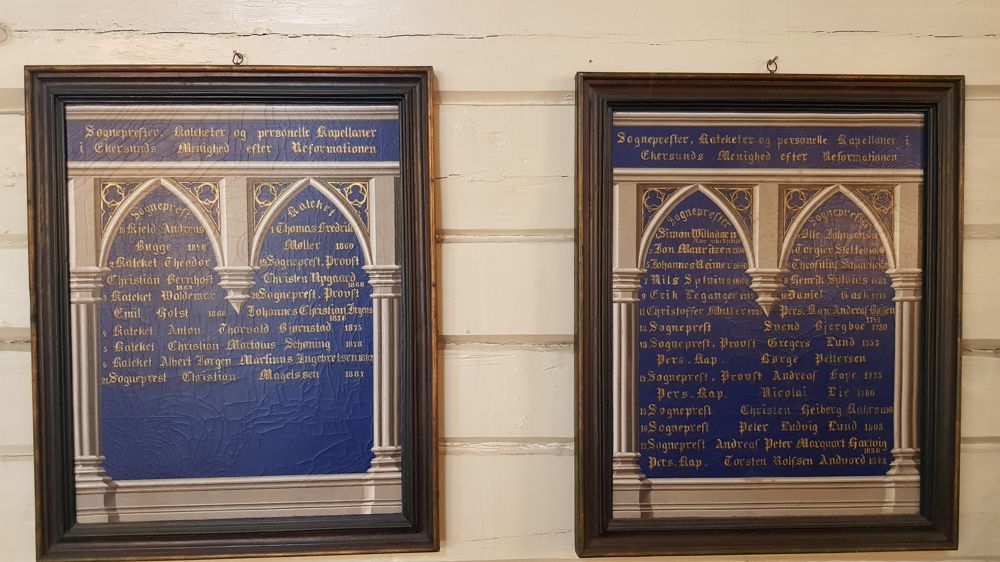 Som en kuriositet kan nevnes at det bak altertavlen er det innskrevet hvem som var kirkeverger i 1607, det var Oluff Eie og Hoskull Seiglem.