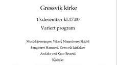 Julekonsert i Gressvik kirke 15 desember kl. 17.00