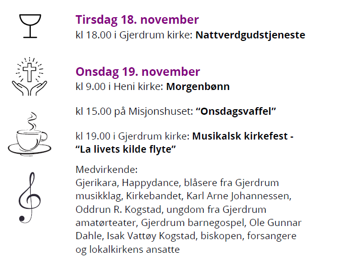 Deler av programmet er åpent for alle, og vi ønsker velkommen til ei festuke!