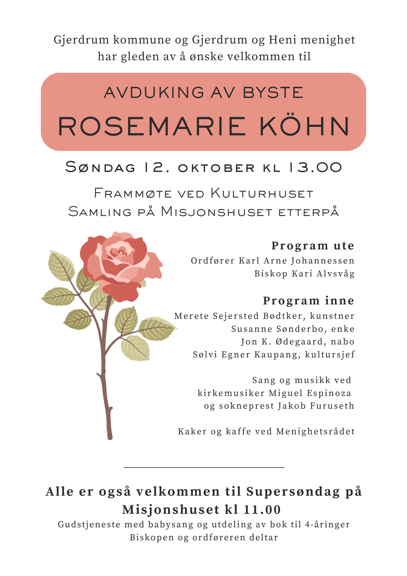 Alle er også velkommen til Supersøndag på Misjonshuset kl 11.00. I gudstjenesten deltar biskopen og ordføreren, det er babysang og utdeling av bok til 4-åringer.