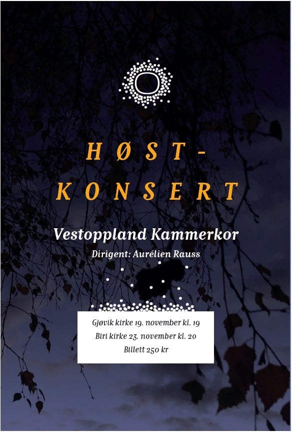 Det blir høstkonsert med Vestoppland kammerkor i Gjøvik kirke 19. november kl 19.00 og i Biri kirke 23. november kl 20.00 Velkommen!