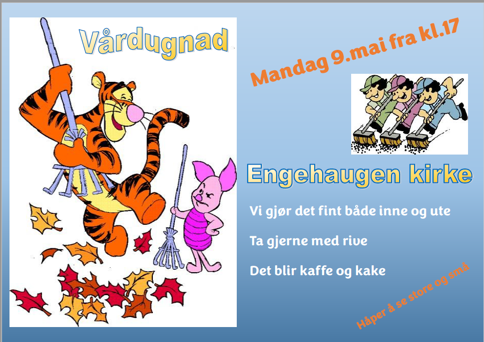 Velkommen til vårdugnad i Engehaugen kirke 09. mai !
