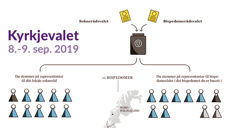 14.11.2018Her er en grafisk framstilling som gir en enkel oversikt over kirkevalget i Den norske kirke.