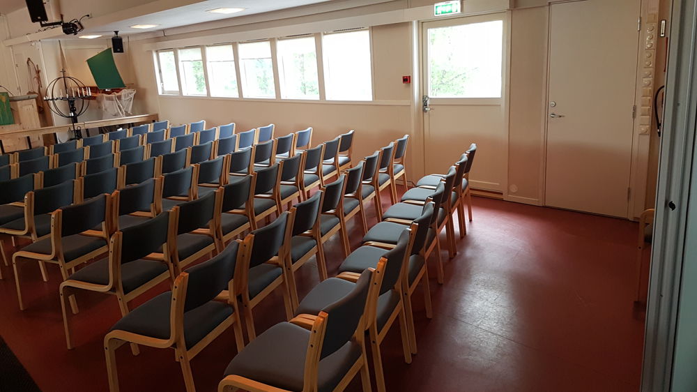Det er fortalt om prøvegudstjenester i skolens gymnastikksal før 1976.