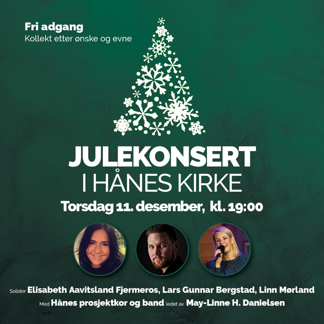 Etter fjorårets suksess er vi glade for å kunne gjenta tradisjonen – julekonsert i Hånes kirke! Torsdag 11. desember kl. 19.00 fylles kirkerommet med juletoner, fellesskap og forventningsfull adventsstemning.