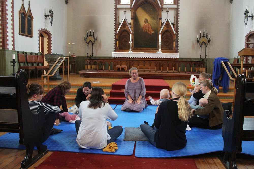 I Vår Frelsers kirke står det vogn på vogn parkert innenfor nordre inngang. Foran trappen til alterringen ligger blå gummimatter klar for rolig aktivitet. Sju mødre med babyer på mellom 3 og 9 måneder er på babysang for tredje gang dette semesteret.