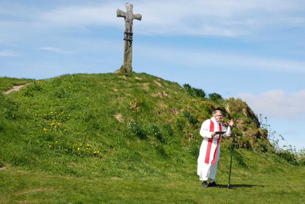 Og fritt og vakkert var det å feire pinse foran korset - med vidt utsyn over både by, hav og horisont.