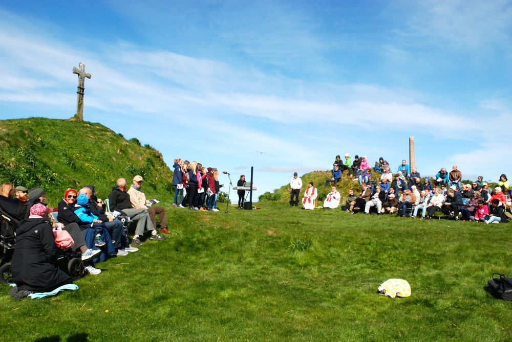 Og fritt og vakkert var det å feire pinse foran korset - med vidt utsyn over både by, hav og horisont.