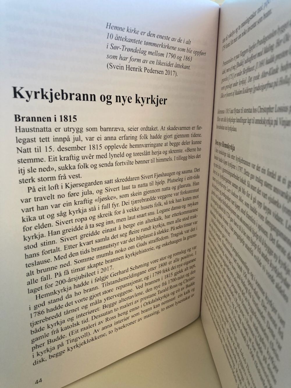 Boka er utgitt av Heim kirkelige fellesråd i forbindelse med Hemne kirkes 200-årsjubileum i 2017 og Vinje kirkes 200-årsjubileum 2020/2021. På bokas forside ser vi den flotte altertavla i Vinje kirke.